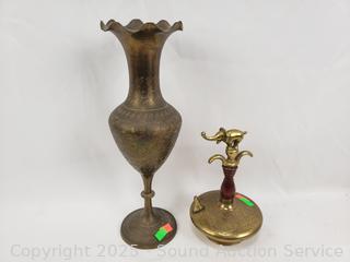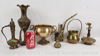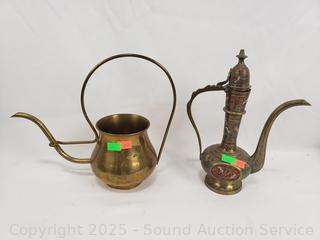 Vintage Chinese opium pipes, Turkish coffee pot, compote, vase, watering can. Refer to photos for lot contents, more details.
