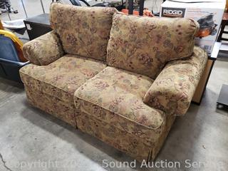 Lot #0010Z: Bassett Upholstered Love Seat w/Spare Upholstery
