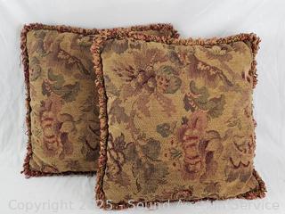 Comes with 2 matching throw pillows & spare upholstery fabric. 32" H x 69" W x 36" D x 19" to seat.