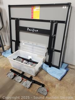 Consignor said it has never been assembled. Comes with manual, a bunch of parts. Item #2622001. 105" x 60" tabletop. $899 Retail value. ATTN: Stock images, when included, are representations of the items and are not guaranteed to be exactly what is in the lot.