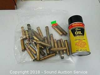 Includes: 30-06 bullets are 150 Grain. 300 savage soft point shells, and (20) 30-30 Winchester 150 grain shells, gun oil and 30-30 casings.