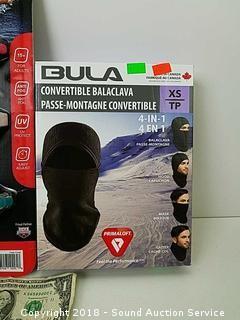 Balaclava is size XS. Both come with original packaging.