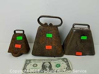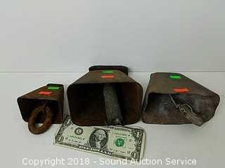 Lot #0202: (3) Vintage Cow Bells - 2-1/2" to 4-1/2"