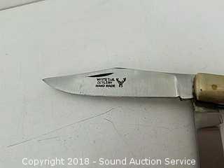 (4) are folding, (Kamp King, White Tail, Red Cross, Winchester), (1) is a Ulis lock blade knife with sheath.
