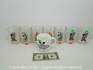 Lot #0047: (7) McDonald's Disneyland Drinking Glasses & Mug