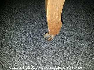 On castors. Mirror is hand beveled, 20" x 18". Dovetail construction. Skeleton key locks, no keys. Approx. 48" tall, 32" wide, 18" deep.