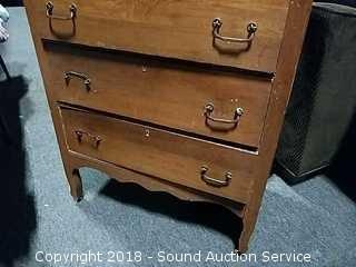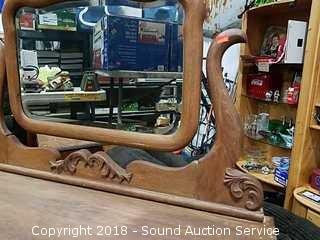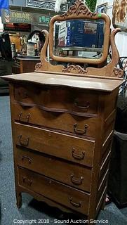Lot #0148: Antique 5-Drawer Locking Dresser w/Mirror