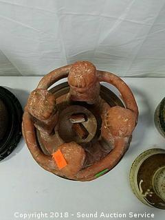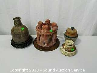 Lot #0236: Decorative Pottery Vases, Candle Holder & Wish Jug