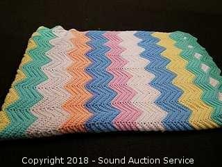 Lot #0344: King Size Blanket & Colorful Crocheted Throw