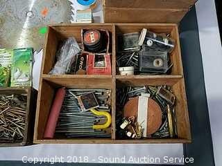 Includes: Screws, nuts, bolts, hinges, hooks, saw blades and more.