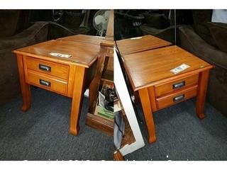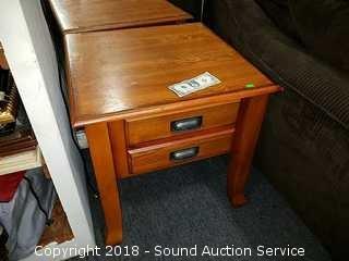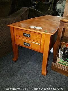 Lot #0126: Pair of Single Drawer Oak Top Side Tables