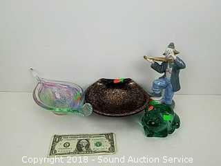 Lot #0061: Porcelana de Cuernavaca Figurine & Art Glass Bowls