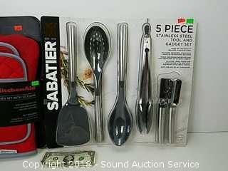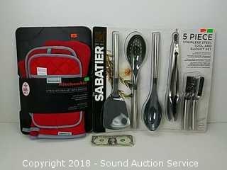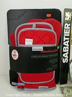 Lot #0108: Stainless Utensil Set & KitchenAid Oven Mitt Set