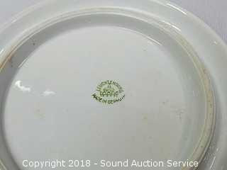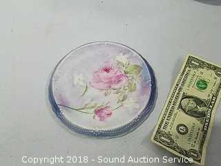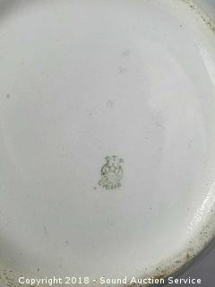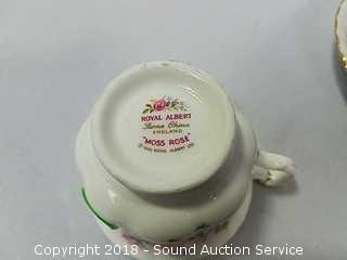 Includes: Fielders Keepsakes, T.F. & S. Made in England, Royal Albert Moss Rose, hand painted Japan, and Leuchiunhg German porcelain trivet. Vase is approx. 12" tall.
