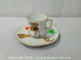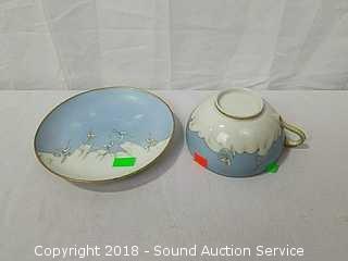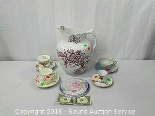 Lot #0233: Teacups & Saucers, Porcelain Trivet & Large Vase