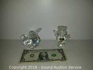 Lot #0060: Val St. Lambert Crystal Bird & Teddy Bear Figurines