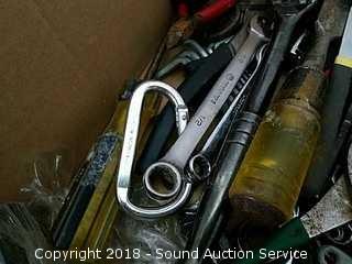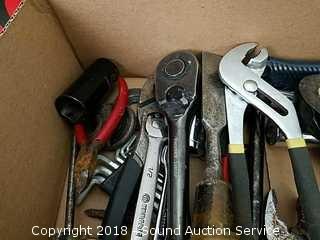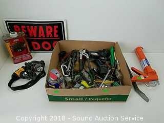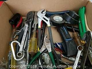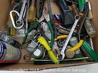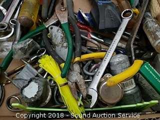 Includes: some good brands Husky, Kobalt, Crescent; caulk guns, screwdrivers, channel locks, wrenches, allen wrenches, flashlight, paintbrushes, and more.