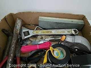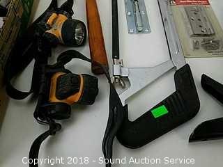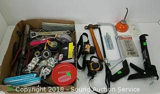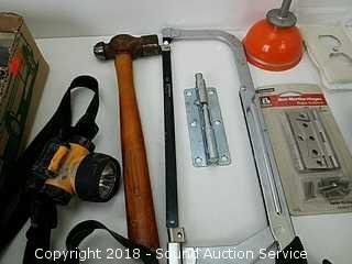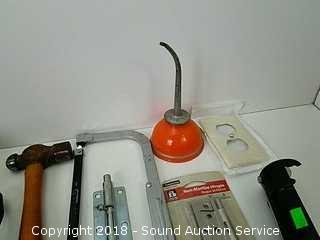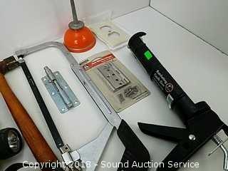Includes: hacksaw, oil can, players, caulk line, crescent wrench, and more.