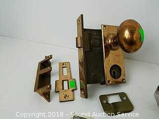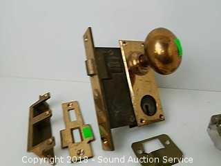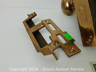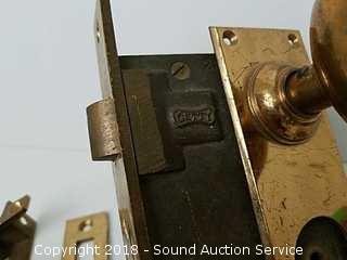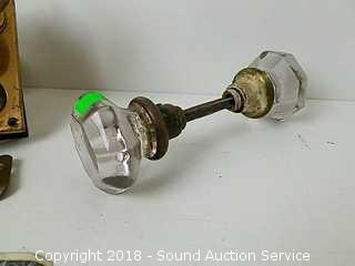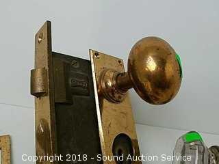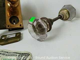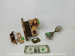 Lot #0201: Vtg. Brass Getty Mortise Lock w/Extra Glass Knobs
