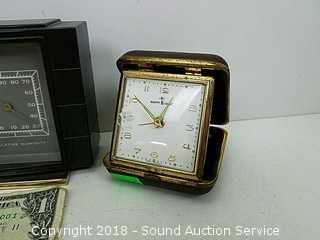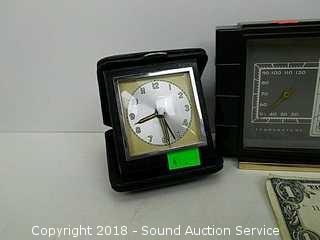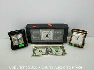 Lot #0004: Vtg. Mantle Barometer & Travel Alarm Clocks