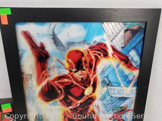 2 Flash & 1 Batman. 10.25" x 7", 12.75" x 18.5", 13" x 19.5". Don't see any major issues.