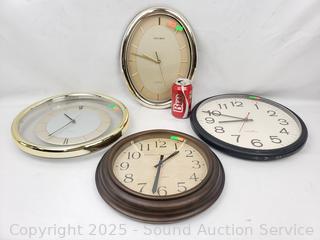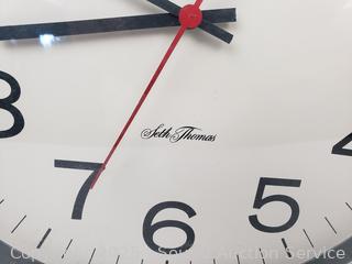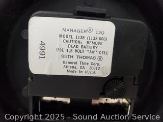 Seth Thomas, Baldauf, Verichron & other wall clock. All appear to be functioning as intended. Seth Thomas has some corrosion in battery compartment. 10" to 13" Dia.