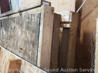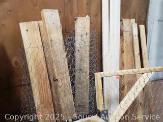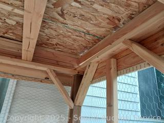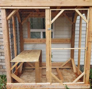 Partially assembled, complete. Consignor said they never completely assembled, had to move before completely assembling. Refer to photos to see it mostly assembled. Comes with with all the parts and pieces, including a full roll of chicken wire. A couple corner wood piece are cracked from disassemble comes with extras. Approx. 8ft H x 8ft x 6ft.