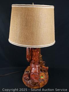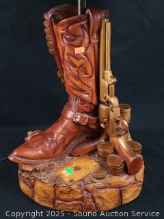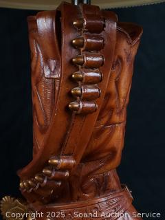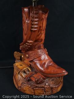 Lot #0014: Ceramic Western Boot Side Iron 31" Table Lamp