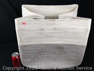 Lot #0128: Ivory Rope Woven Basket Hamper