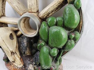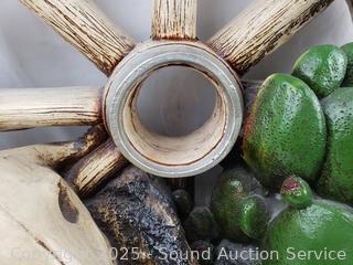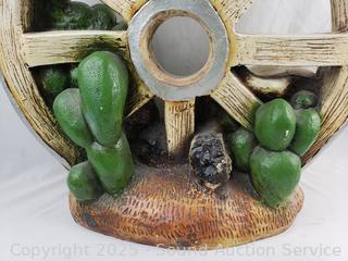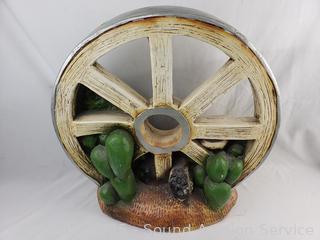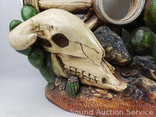 Lot #0013: Southwestern Painted Ceramic Wagon Wheel Skull Sculpture