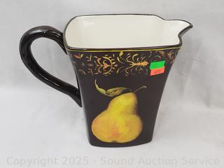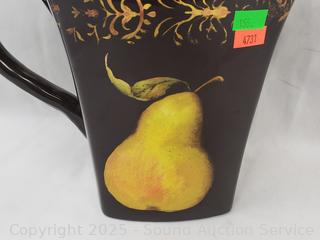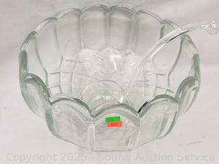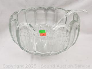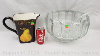 Lot #0155: Thick Glass Punch Bowl w/Ladle & Pear Pitcher