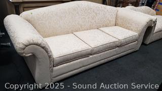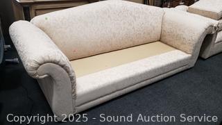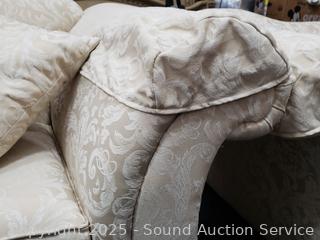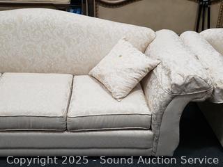 Lot #0009: Victorian Ivory Upholstered Sofa w/Matching Throw Pillows