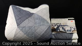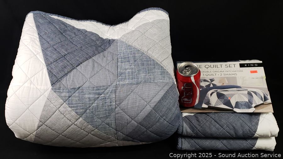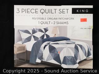Lot #0192: 3pc Reversible Origami Patchwork King Quilt Set