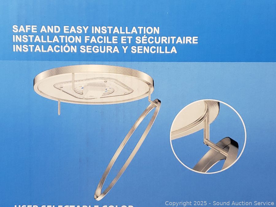 Brushed nickel finish, frosted glass lens. 24W, 1560LM, 3000-5000K color. Doesn't appear to have been installed. Appears complete with hardware.