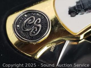 3 Gift sets, 3 with original box, 4 used with wear. Jaguar, Frost Cutlery, etc.