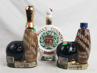 (2) 1974 National Convention Lake Tahoe Bowling (one is missing lid, cap), 1973 Beverly Hills Country Club.