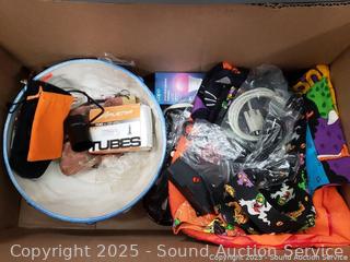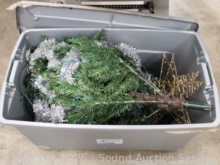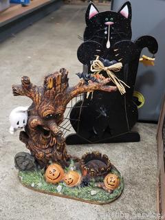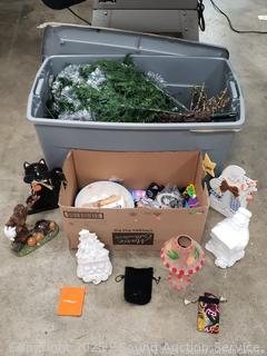 Assorted Halloween Decor & Faux Christmas Tree - Top of tree is not lighting. Refer to photos for lot contents, more details.