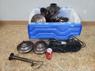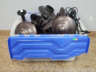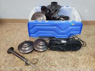 Assorted Stake Lights w/Wiring - 7 Rods w/Stakes, 3 power supply boxes, 16 tops. some with a bunch of wiring, untested. Some dings, wear.