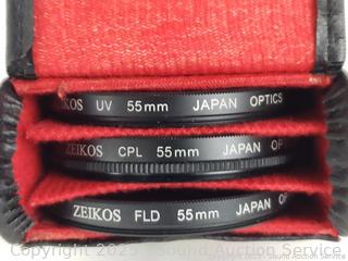 3 Zeikos, 1 Petri, 1 Tiffen Camera Lens Filters - Petri SL39 UV, Zeikos FLD, CPL, UV 55mm, Tiffen CIR Polarized 52mm. Don't see any issues.