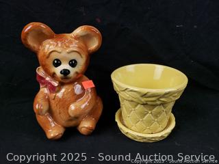 Lot #0075: Pottery Teapot, Wall Pockets, Planter Pot, etc.