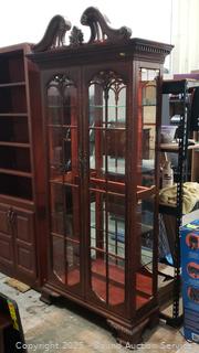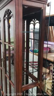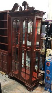 Lot #0022: Traditional Cherry 4-Shelf Mirrored Lighted Curio Cabinet