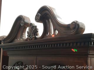 Side access, adjustable shelf. Light works. Carved accents. 89.75" H x 41.5" W x 15.5" D.