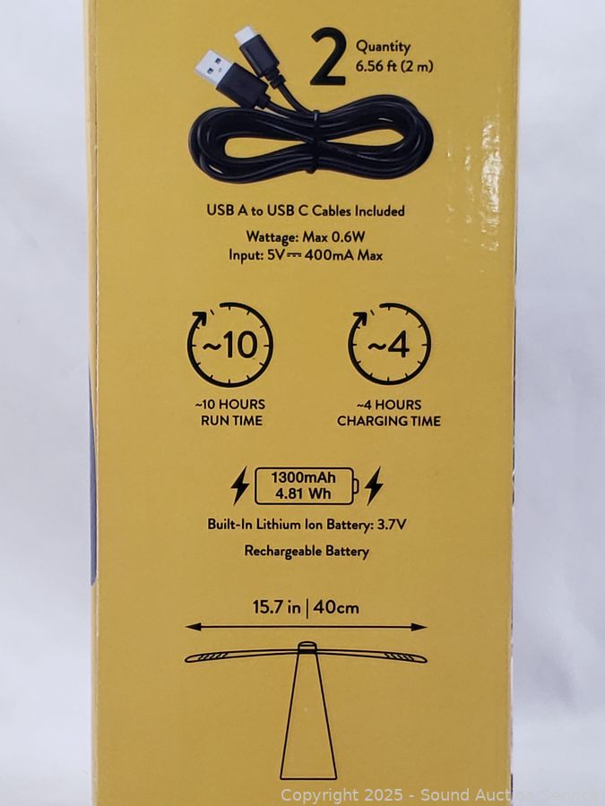 Both appear to be functioning as intended. Comes with charging cords. 9.4" H x 3.2" Dia.