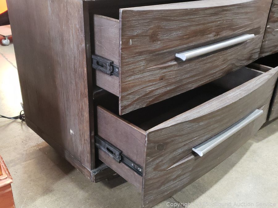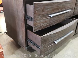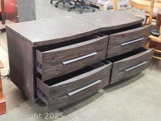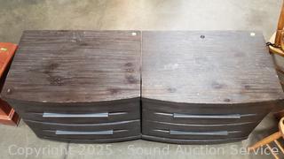 Various scuffs, wear to finish. One has a working light, the other is non-functioning. Ball bearing drawer guides. Appear to be all wood construction. 24.25" H x 27" W x 19" D.