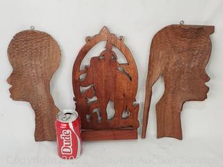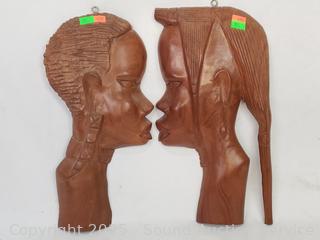 Lot #0187: 2 Hand Carved Wood African Busts & Laos Elephant Carving