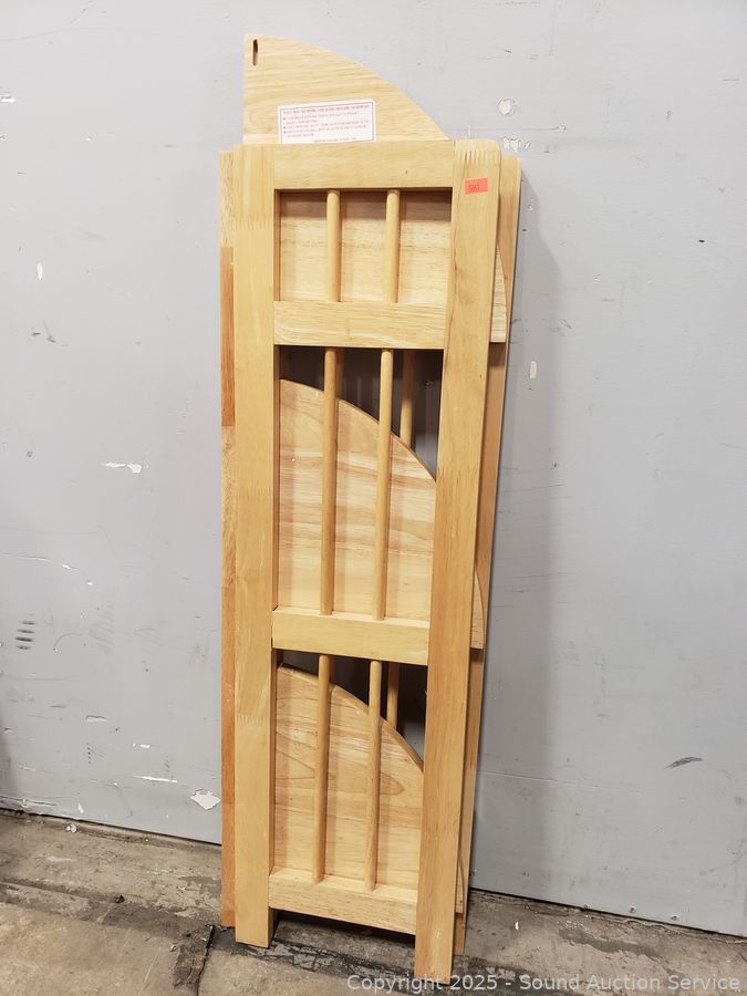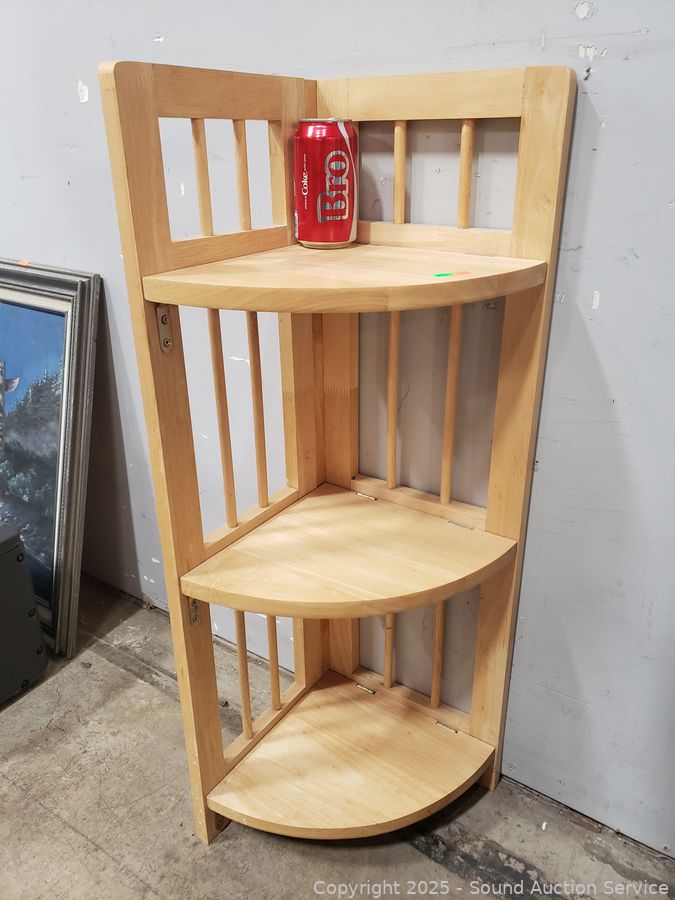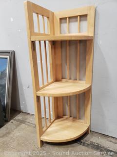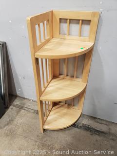 Lot #0029: 3 Shelf Wood Collapsible Corner Shelving Unit