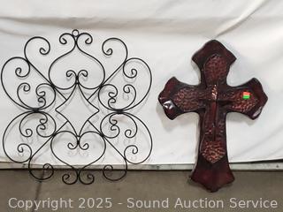 Metal Art Cross, Kokopelli Fountain, Native Vase - 17" x 10" x 6" fountain, pump has power, 20" x 15" metal art cross.