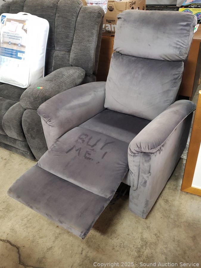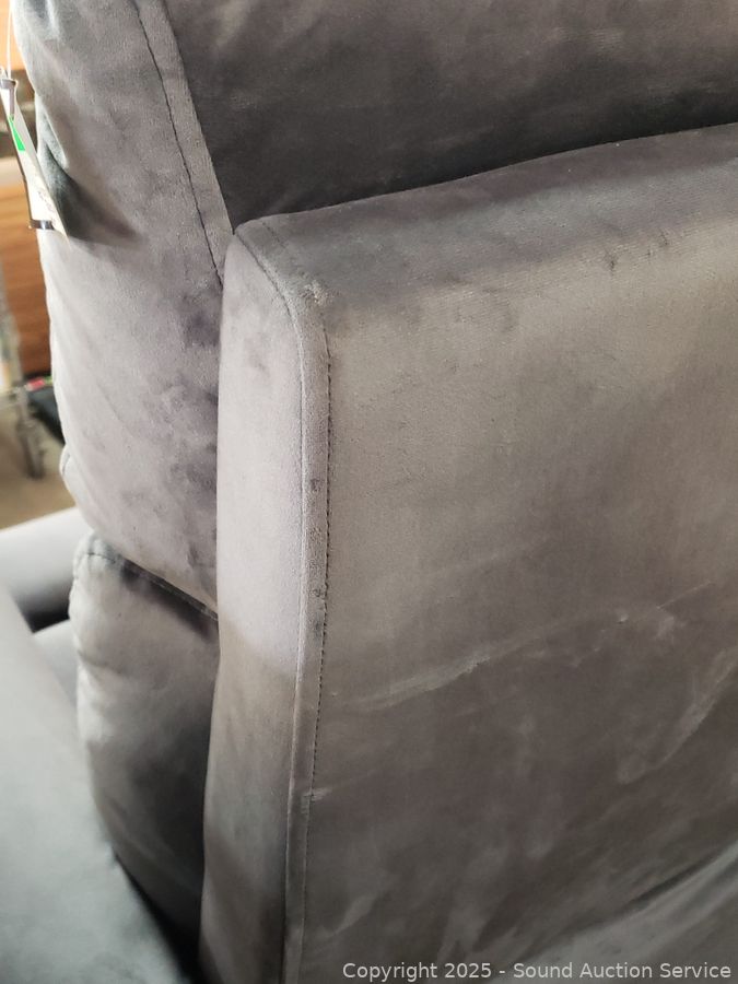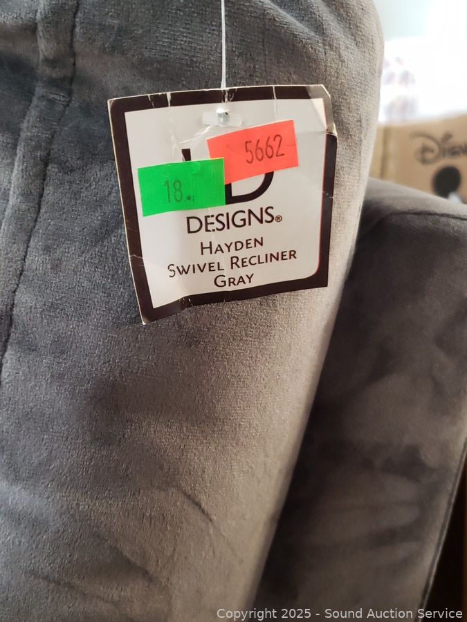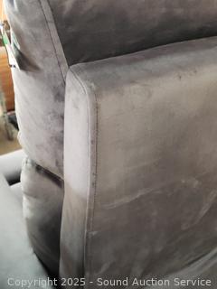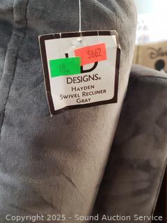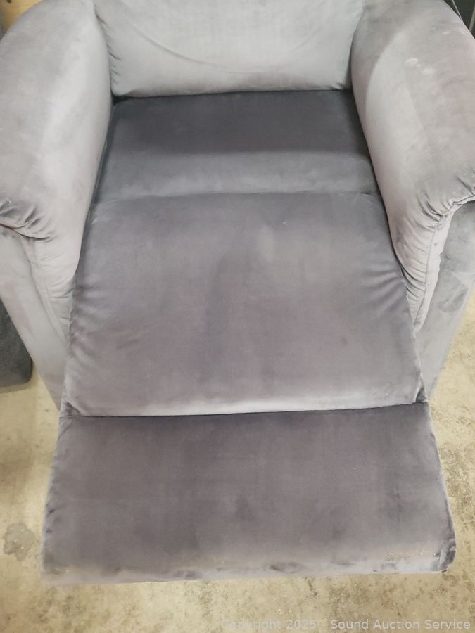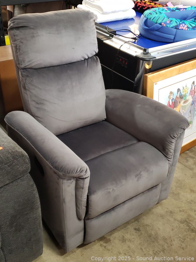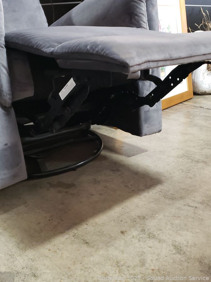 Lot #0018: Nice Gray Microfiber Plush Upholstered Swivel Rocking Recliner