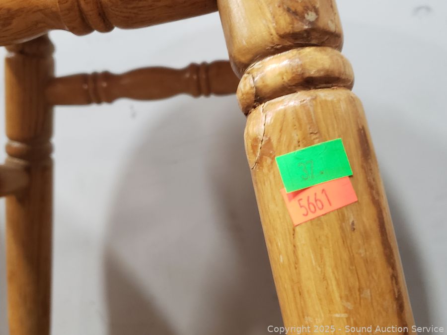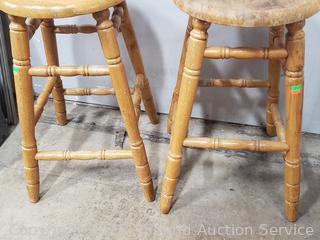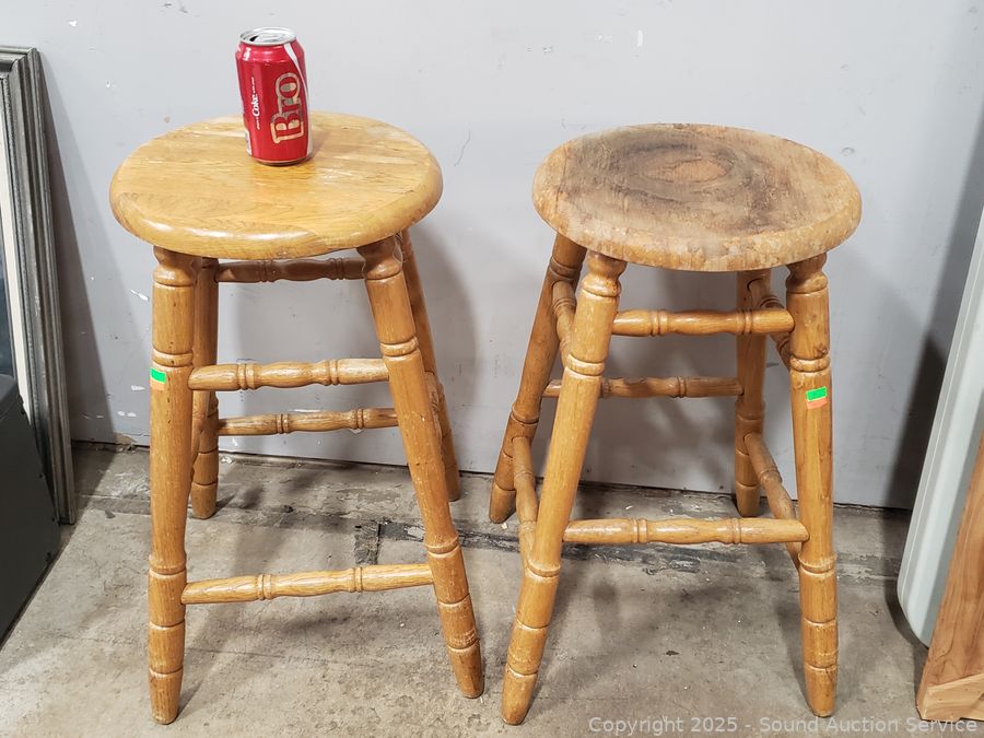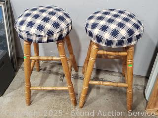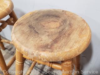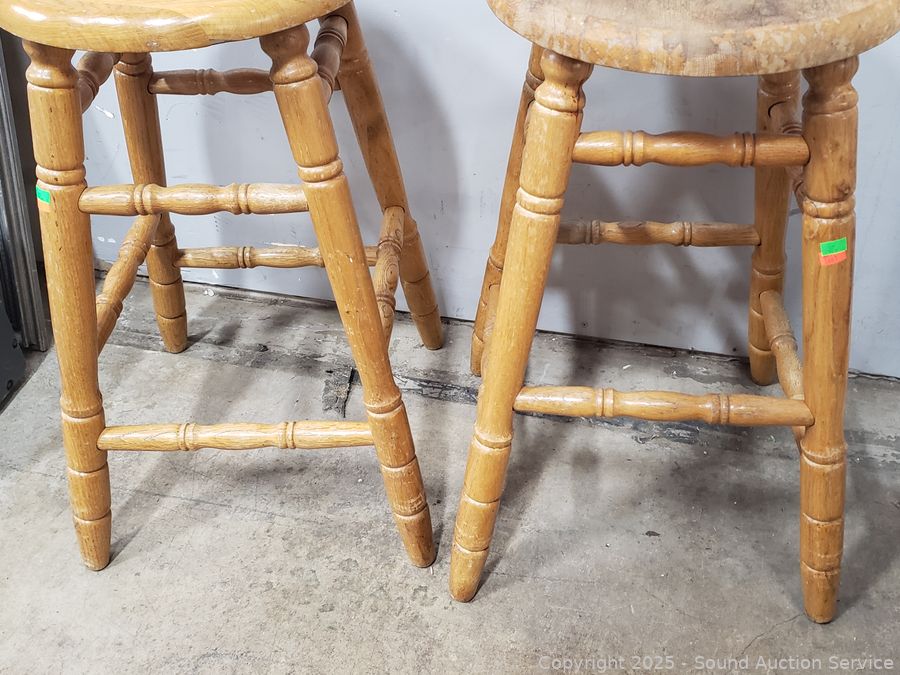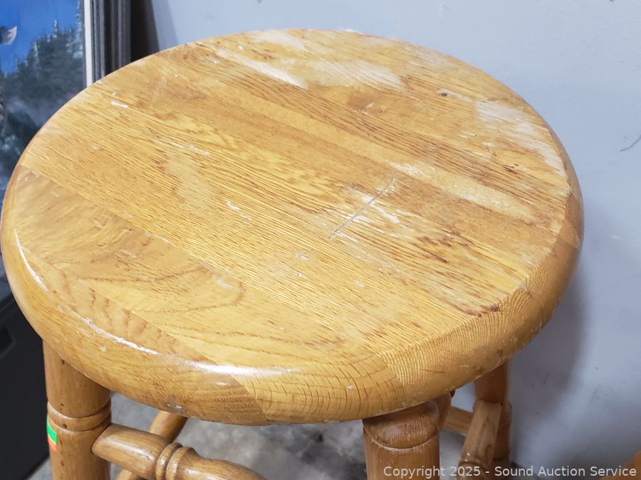 Lot #0037: Pair of Oak Stools w/Chair Pads