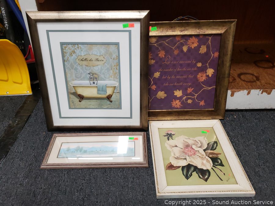 Lot #0166: 2 Floating Shelves, Wall Decor Artwork & Small Mirrors
